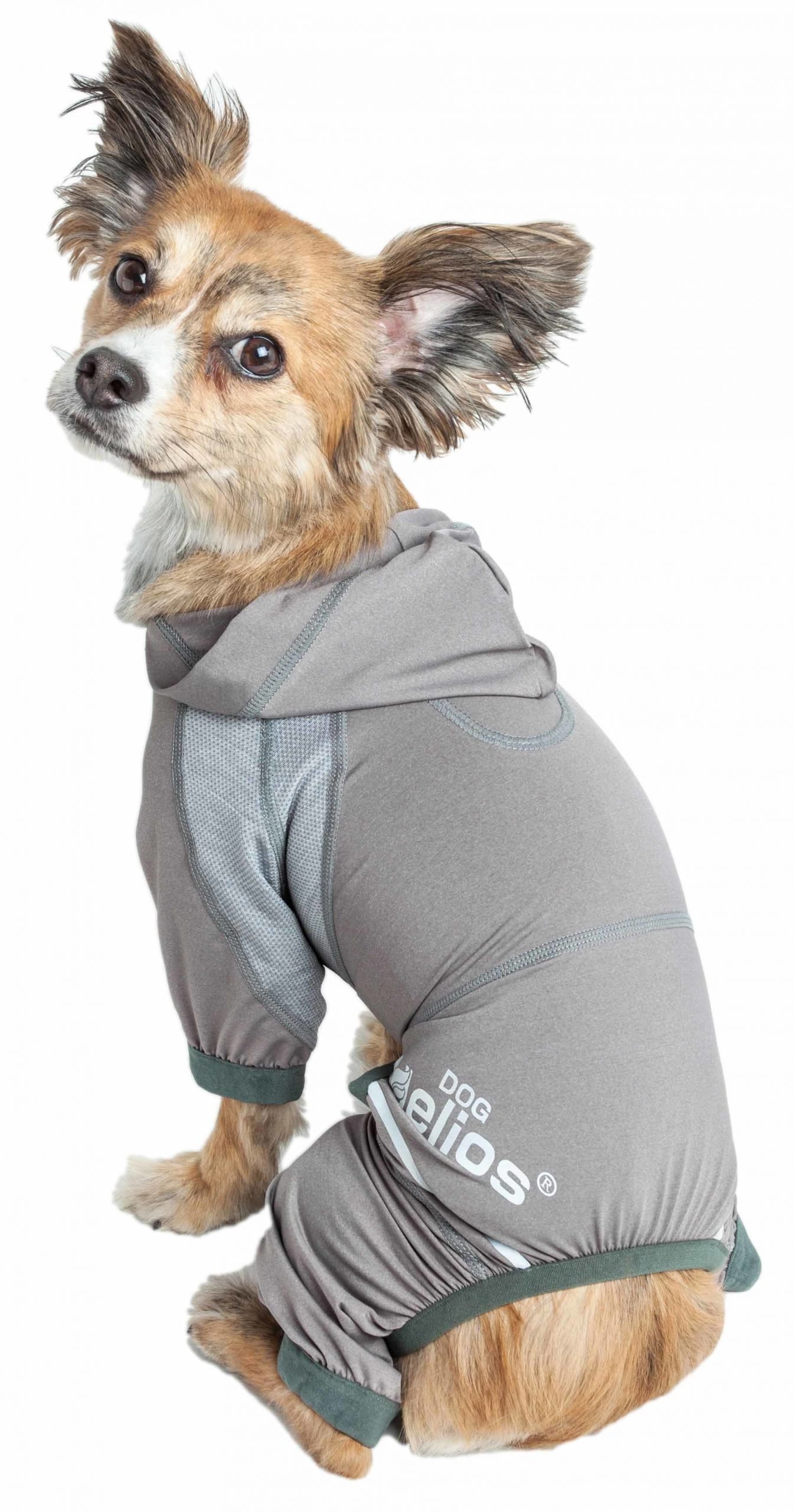 The Dog Helios ‘Namastail’ Lightweight 4-Way Stretch Breathable Full Bodied Performance Yoga Dog Hoodie Tracksuit is all about next-level tranquility and complete flexibility. The entire body features specially engineered Lightweight ultra-elastic fabrics that fuse together for maximum Flexibility, Mobility and Breathability that is also Permeable. The main Exo-shell features Elastane and Spandex with 4-way stretch technology that moves in every direction. The Namastail Dog Hoodie also features well-coordinated strategically placed perforated stretchy fabrication trims for Strategic Ventilation that adds Breathability. This Yoga Dog Tracksuit also features elasticity around the sleeves and the body for a perfectly uniform fit with added growth room that almost feels like a secondary skin. Features Dual-Reinforced stitching at every seam for Durability and Stability with added reflective lining along the outside for night protection. Additionally, the main exo-shell and trims both feature Quick-Drying technology that dries rapidly and while offering Anti-Odor technology that prevents odor causing microbes. Assists with UV Protection against the suns harmful rays and fitted perfectly to help assist in containment or collection of shedded hairs. Features an easy on and off pull over design and an accented pull-over hood with a leash-slit along the back. Machine Washable. Available in Multiple Colors and Sizes.