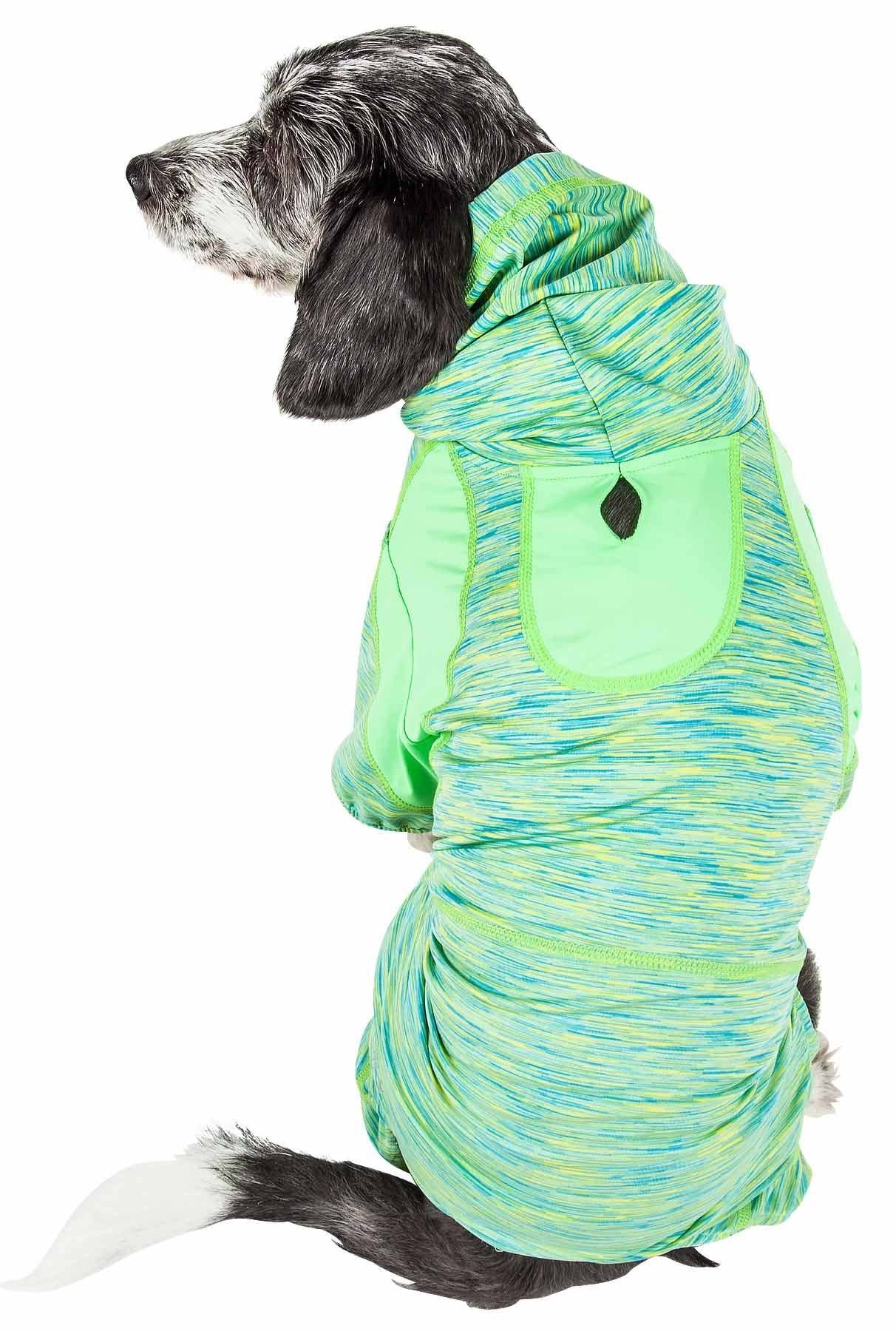 Home Pets Pet Supplies Pet Fashions Pet Life Active ‘Downward Dog’ Heathered Performance 4-Way Stretch Two-Toned Full Body Warm Up Hoodie