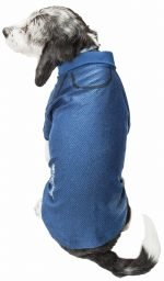 The Pet Life ACTIVE ‘Fur-Flexed’ Solid Polo T-shirt features a Medium-weight Superior-Stretch Diamond Stitched fabric that is specially treated to provide exceptional stretch resulting in extreme Mobility. This material is specially Micro-threaded that looks and feels like cotton and dries much faster and is superior in Breathability with full body Ventilation. The Fur-Flexed Polo is also medium-weight that cools and heats by maintaining performance body control. This material also Features Memory-stitching and 4-Way Stretch Technology that moves better in every direction with a customized fit that’s further than next to skin or Fur without the squeeze. Features Quick-Drying properties that dries really fast, while offering Anti-Odor technology that assists with odor causing microbes. This Dog Polo T-shirt is also UV Protectant against the suns harmful rays and precisely fitted to help assist in containment or collection of shedded hairs. Design features Tex-lock and Dual stitching at every seem for durability with a Pull-Over design for easy on and off access with buttoned trims and a durable accented Rib-knitted fashion collar and sleeves with Reflective-Taping for added night visibility. Machine Washable. This style is part of our Pet Life Activewear Collection. Available in Multiple Sizes and Colors.